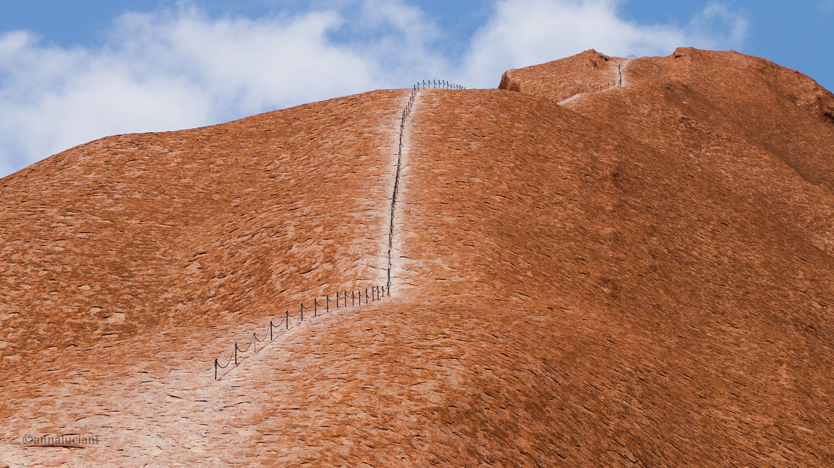 uluru-21 Pubblicato 14 febbraio 2017 su 1683 × 945 in La magia di Uluru ← Precedente Successivo → Un tempo il monte veniva scalato. Oggi, per rispetto verso la popolazione aborigena che lo ritiene uno dei luoghi più sacri del Paese, scalare Uluru è proibito…nonostante rimangano le tracce del passato! (foto: Simone Chiesa)