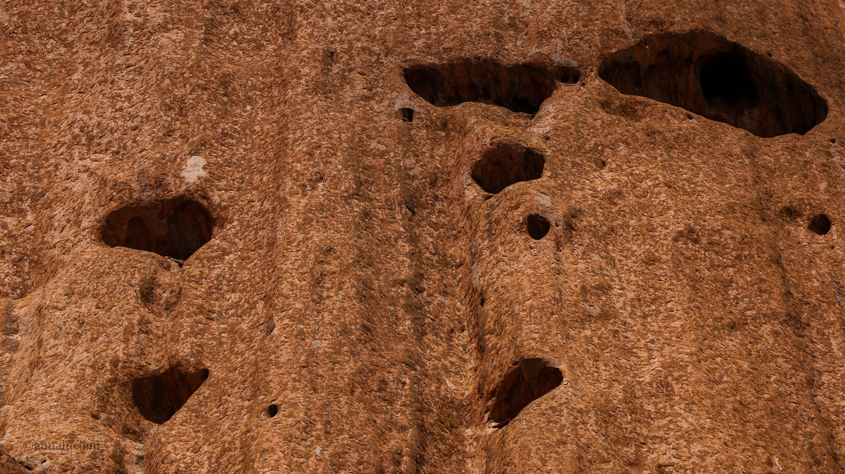 uluru-31 Pubblicato 14 febbraio 2017 su 1683 × 945 in La magia di Uluru ← Precedente Successivo → alcuni buchi, vere e proprie caverne, lungo le pareti del Monte Uluru.(foto: Anna Luciani)