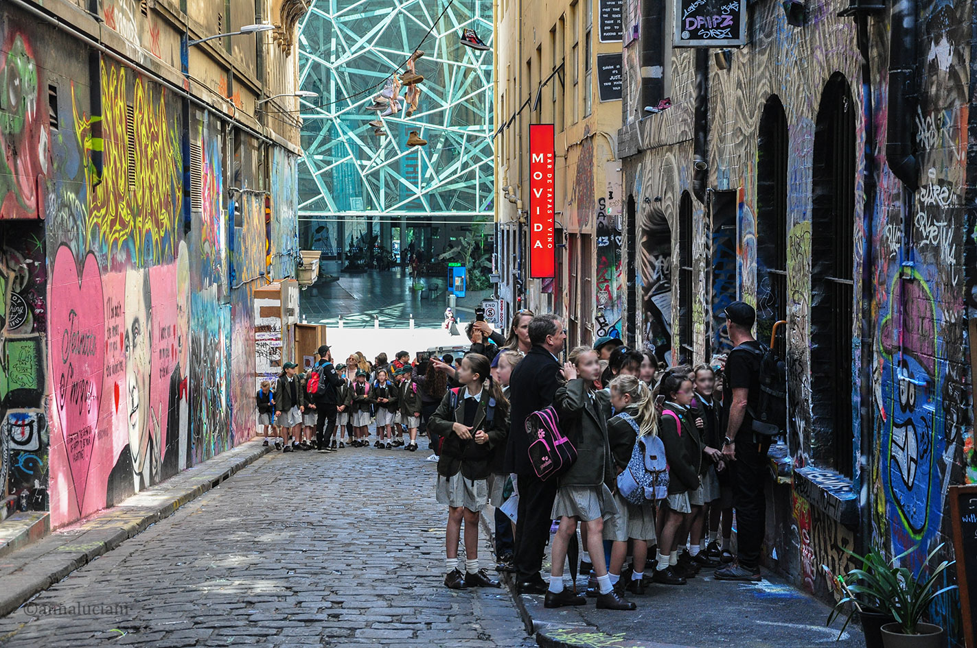 melbourne-109 Pubblicato 18 aprile 2017 su 1423 × 945 in MELBOURNE… UNA CITTA’ PIENA DI SEGRETI DA SCOPRIRE ← Precedente Successivo → Scolaresche in giro per Hosier Lane, accompagnati da veri writers per capire meglio il mondo della Street Art (foto: Anna Luciani)