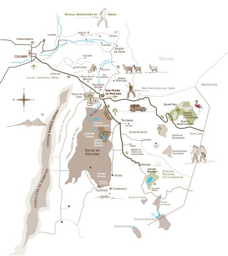 mappa dell’area attorno a San Pedro de Atacama (fonte: http://www.collectingrockstravel.com)
