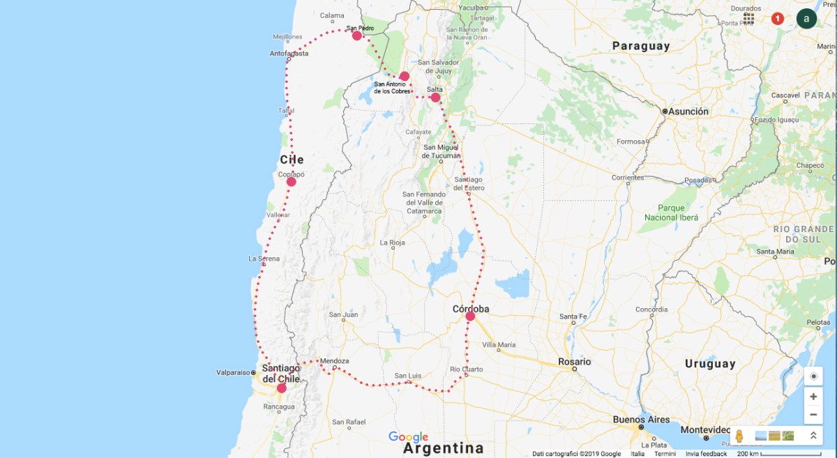 mappa viaggio Pubblicato 6 gennaio 2019 su 1300 × 712 in Voglio vedere le Rose di Atacama – la mia avventura nel Nord del Cile ← Precedente Successivo → il nostro tour
